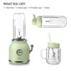 RETRO DESIGN & EASY USE: Retro and exquisite design, great for home, office and travel. Simple one-touch operation, just pull down the handle to start working immediately. This portable juicer is also a suitable gift for juice and travel enthusiasts.