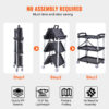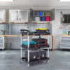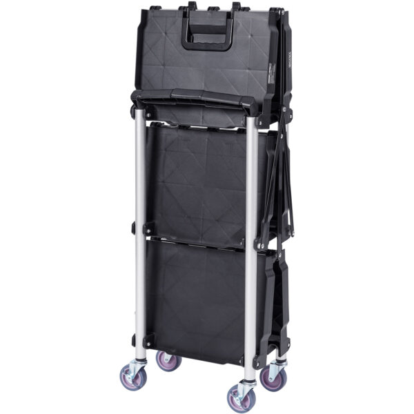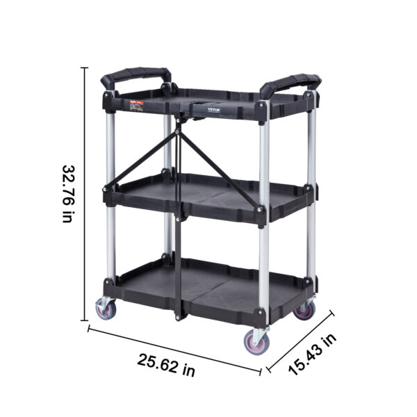 VEVOR Foldable Utility Service Cart, 3 Shelf 165LBS Heavy Duty Plastic Rolling Cart With Lockable Wheels, Ergonomic Handle, Portable Garage Tool Cart